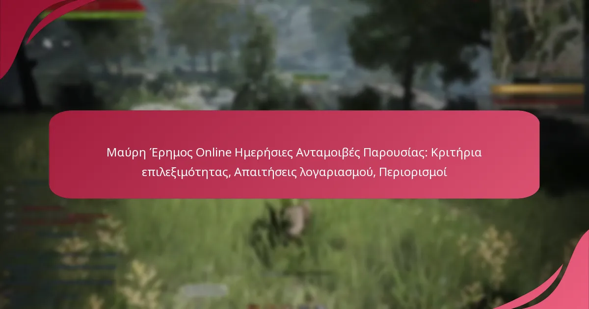 Στο Black Desert Online, οι παίκτες μπορούν να κερδίσουν Ημερήσιες Ανταμοιβές Παρουσίας πληρώντας συγκεκριμένα κριτήρια επιλεξιμότητας, όπως το επίπεδο του χαρακτήρα, την ηλικία του λογαριασμού και την γεωγραφική τοποθεσία. Επιπλέον, οι απαιτήσεις του λογαριασμού, όπως η κατάσταση επαλήθευσης και η περιφερειακή επιλεξιμότητα, παίζουν καθοριστικό ρόλο στην μεγιστοποίηση αυτών των ανταμοιβών. Είναι επίσης σημαντικό να γνωρίζετε τους περιορισμούς που σχετίζονται με την αξίωση αυτών των ανταμοιβών για να διασφαλίσετε μια ομαλή εμπειρία.